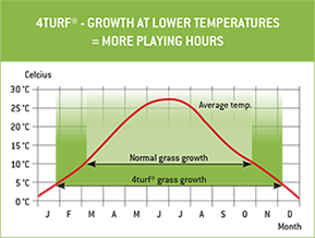4turf® is fast, strong establishing, and highly tolerant of wear – and a vital ingredient of our overseeding mixtures. Expressmaster contains 25% 4turf®; Expressmaster Plus contains 50% 4turf®.