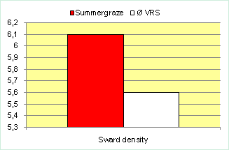 As expected, SUMMERGRAZE proves good winter hardiness, less weed growth and according to the BSA test good sward density as well as extreme resistance to fusarium and rust.